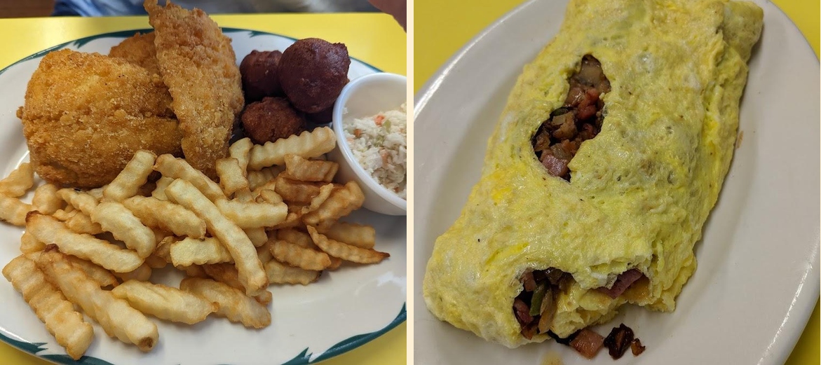 Be sure to try the French Toast, Sausage & Cheese Omelet, and their famous Pancakes. The desserts are delightful too!